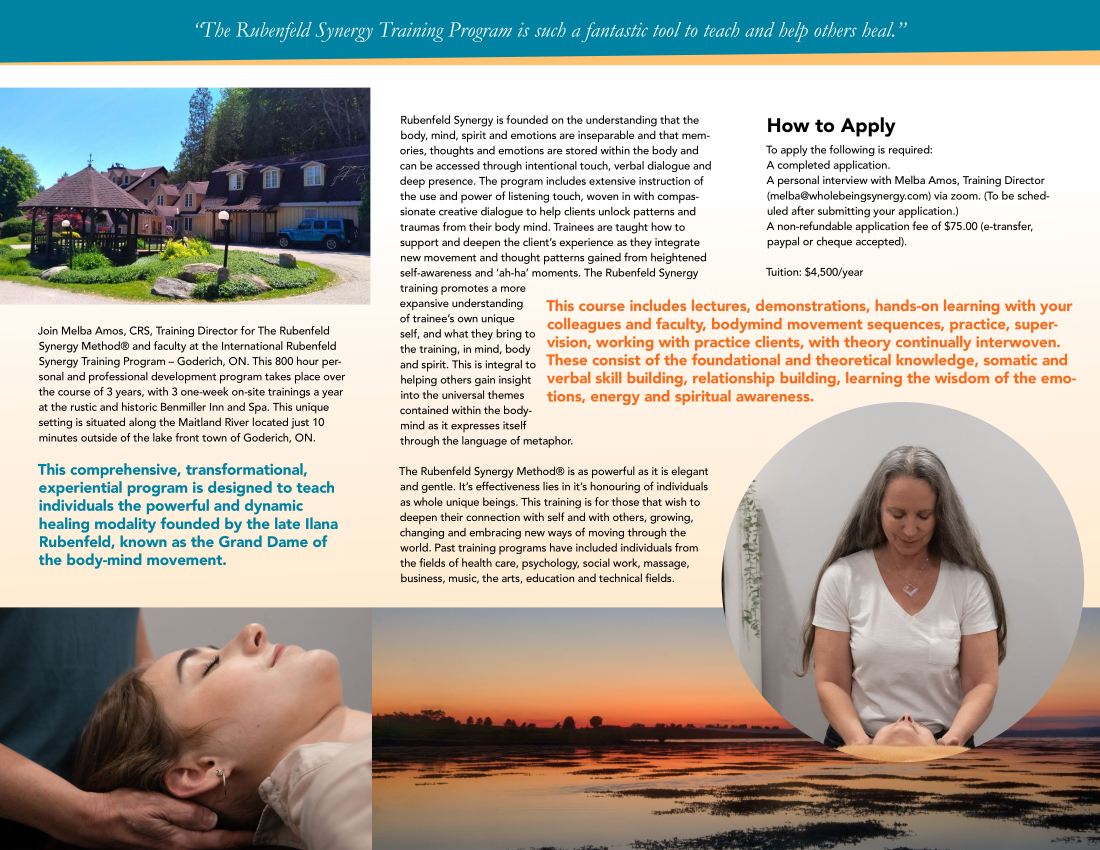 You will work with practice clients each year of training following the guidelines and appropriate level of learning for that year, to build your personal practice and skills.  You will deepen your presence and skills slowly, safely and through your own bodymind.  You will become versed in the wisdom of the body, inviting and staying with presence.